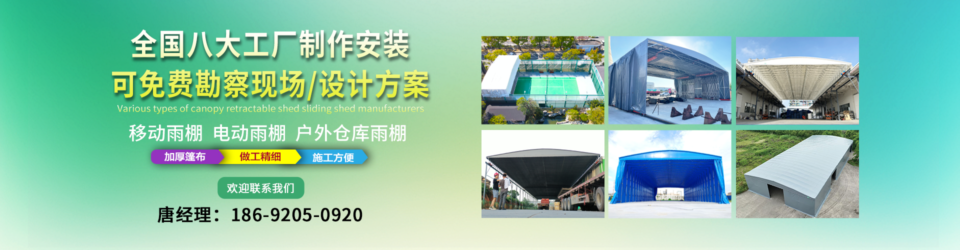 湖南鑫建華鋼結(jié)構(gòu)工程有限公司是一家電動(dòng)雨棚、膜結(jié)構(gòu)車棚研發(fā),生產(chǎn)銷售,施工安裝于一體的專業(yè)鋼結(jié)構(gòu)科技公司,主要產(chǎn)品有伸縮雨棚,電動(dòng)雨棚,膜結(jié)構(gòu)車棚等。 湖南地區(qū)職員目前有200多人,自建廠房15600平方米,配備先進(jìn)的生產(chǎn)流水線,使每件品質(zhì)產(chǎn)品的堅(jiān)實(shí)基礎(chǔ)。 公司在衡陽,蘇州,天津,濟(jì)南,鄭州,江門,佛山,武漢,重慶均設(shè)有服務(wù)工廠,擁有專業(yè)的技術(shù)團(tuán)隊(duì),配備先進(jìn)的設(shè)備和流水線生產(chǎn),產(chǎn)能高,貨源充足,發(fā)貨速度快,服務(wù)區(qū)域廣。 移動(dòng)伸縮棚適用于通道臨時(shí)倉儲(chǔ)、戶外運(yùn)動(dòng)遮陽、污水池遮蓋、能源交通、熱力化工、礦山、船舶制造及市政建設(shè)、物流、碼頭等領(lǐng)域的構(gòu)件制作加工,成品半成品存放、倉庫、野外儀器設(shè)備操作用房等。尤其是對(duì)工廠發(fā)貨、倉儲(chǔ)臨時(shí)遮雨防嗮,梅雨期較長(zhǎng)、建設(shè)周期較短的工程施工等特別適用。還可根據(jù)用戶需求量身定制、適合企業(yè)所需不同款式的產(chǎn)品?! ∥夜緢?jiān)持“誠信社會(huì)為本,客戶滿意為榮”的經(jīng)營理念,做到質(zhì)量把控,嚴(yán)格管理,精益求精,恪守承諾。使鑫建華逐步走向成熟,其系統(tǒng)化、專業(yè)化日趨完善。以專業(yè)的技術(shù)、科學(xué)的管理,更高的產(chǎn)品質(zhì)量,優(yōu)良的企業(yè)信譽(yù),真誠的客戶服務(wù),靈活多樣的經(jīng)營方式和務(wù)實(shí)創(chuàng)新的企業(yè)精神愿與社會(huì)各界攜手合作,為推動(dòng)智能鋼結(jié)構(gòu)建筑事業(yè)的發(fā)展而不斷努力。...